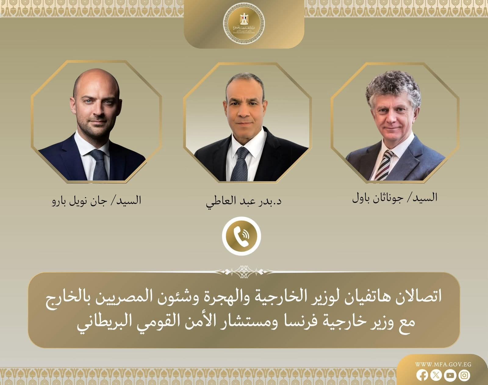 اتصالان هاتفيان لوزير الخارجية والهجرة مع وزير الخارجية الفرنسي ومستشار الأمن القومي البريطاني