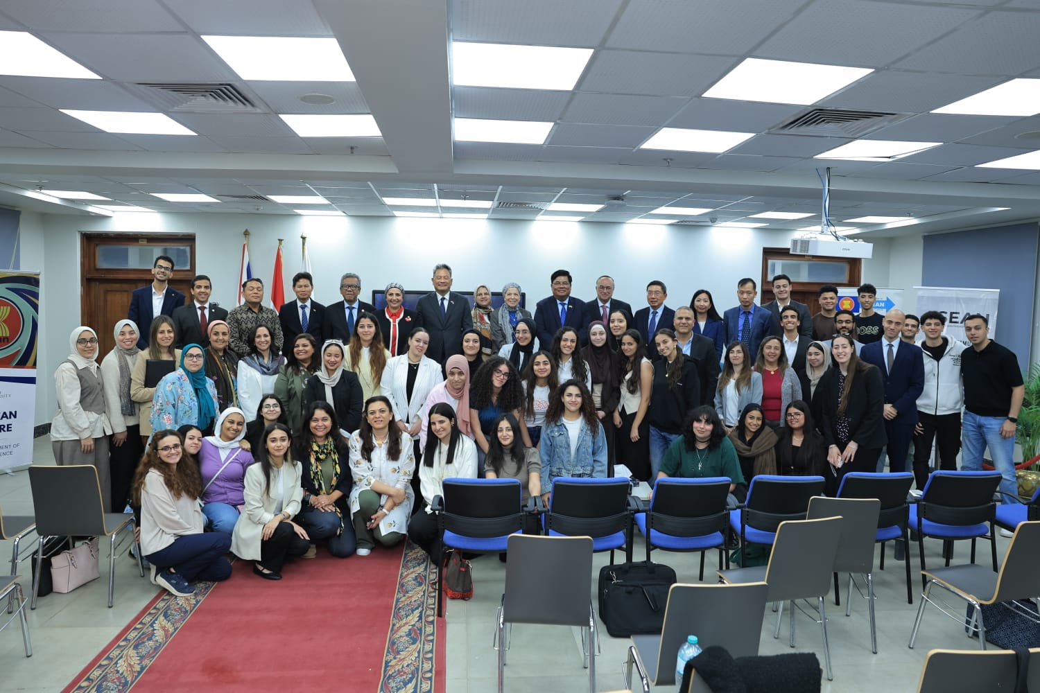 وتضمنت الفعاليات عرضًا تقديميًا حول رؤية رابطة الآسيان وهيكلها المؤسسي ودورها الدولي، أعقبه جلسة نقاشية موسعة أدارها سفير تايلاند ورئيس لجنة الآسيان بالقاهرة، حيث شارك السفراء والطلاب وأعضاء هيئة التدريس في حوار مفتوح تناول عددًا من القضايا الإقليمية والدولية.