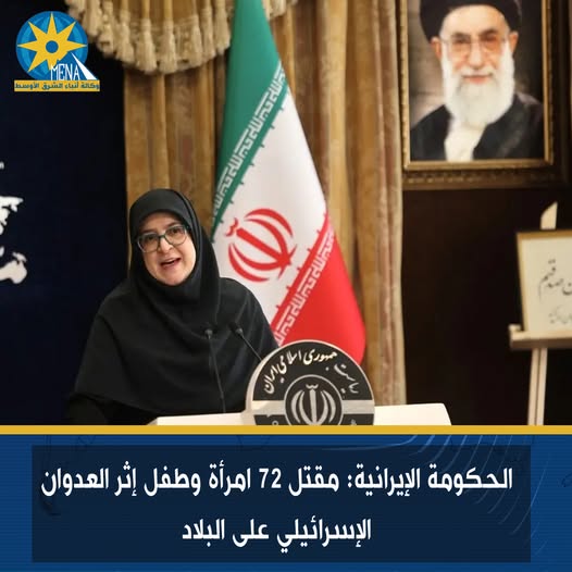 الحكومة الإيرانية: مقتل 72 امرأة وطفل إثر العدوان الإسرائيلي على البلاد