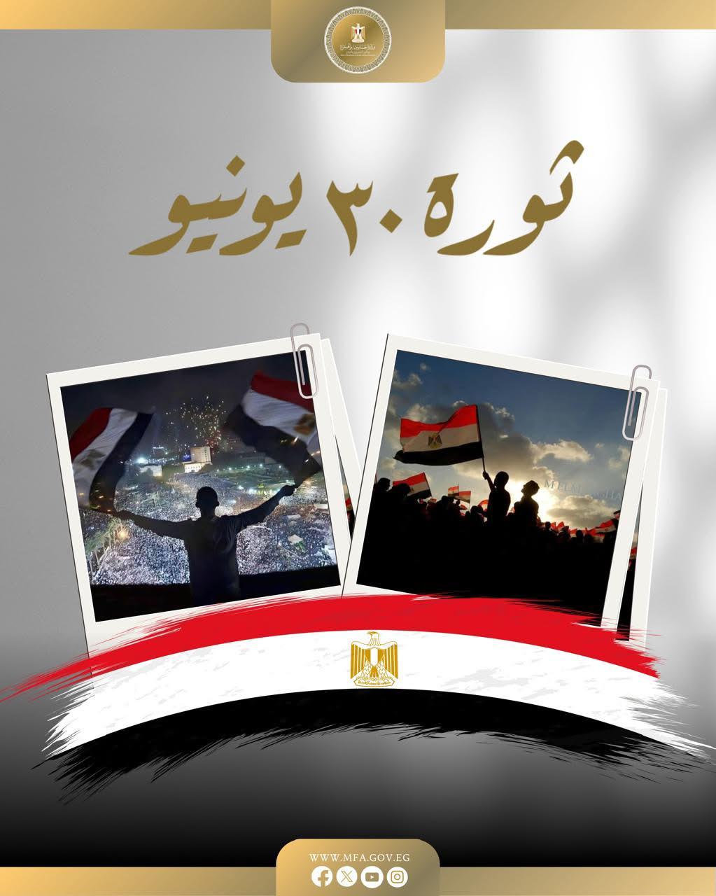 “الخارجية” تتقدم بتحية إعزاز وتقدير لشعب مصر العظيم بمناسبة ذكرى ثورة 30 يونيو