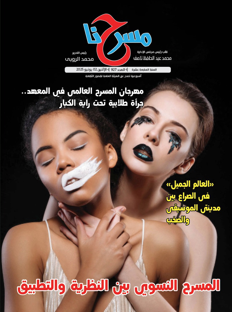 صدر عن الهيئة العامة لقصور الثقافة، برئاسة اللواء خالد اللبان، العدد الإلكتروني الجديد "927" من جريدة "مسرحنا"، وبرئاسة تحرير الكاتب والناقد محمد الروبي. استُهل العدد الصادر بإشراف الكاتب محمد ناصف نائب رئيس الهيئة، بقسم المتابعات والأخبار وتقرير عن أسماء الفائزين بمسابقة توفيق الحكيم، التي نظمها المركز القومي للمسرح والموسيقى والفنون الشعبية، ويكتب حسن عبد الهادي عن اجتماع اللجنة العليا للمهرجان القومي في نسخته الجديدة، وعن عرض "فتوات قصر الشوق" المقرر تقديمه في 11 يونيو على مسرح الحرس الجمهوري، وكذلك عرض "رماد" لفرقة فرسان الشرق، الذي قُدم على مسرح الجمهورية في 17 مايو الماضي. وفي تغطية لموسم مسرح الثقافة الجماهيرية، تلتقي آية عرفة بفريق عرض "الطوق والإسورة" لفرقة طنطا، بينما ينقل عماد علواني تفاصيل ورشة الإضاءة التي قدمتها الأمريكية كاثلين ديفولت بالمعهد العالي للفنون المسرحية. كما تعد تغريد حسن ملفا خاصا حول مؤتمر الإبداع والهوية الذي نظمه المركز القومي للمسرح والموسيقى والفنون الشعبية، ويلتقي جمال الفيشاوي مع فريق عرض "جويا"، المشارك ضمن امتحانات قسم العرائس بمعهد فنون الطفل. وفي قسم الحوارات والتحقيقات، يستعرض عماد علواني آراء المشاركين في المهرجان العالمي لمعهد الفنون المسرحية، وتحاور صوفيا إسماعيل المخرج تامر كرم، مدير فرقة مسرح الشباب. أما في قسم رؤى، فيكتب د. محمود كحيلة عن عرض "الشيطان" للمخرج أحمد عبد الجليل وفرقة الدقهلية، تحت عنوان: "قومية الدقهلية حضرت شيطانا لم ينصرف"، ويكتب ياسين سليماني عن مسرحية "العالم الجميل". وفي قسم نوافذ، يصحبنا هشام عبد الرؤوف في جولة داخل شارع المسرح الأمريكي، مستعرضا المسرح الكوري في الولايات المتحدة، كما يكتب د. عمرو دوارة عن عصام الشماع بوصفه مبدعا استثنائيا، ويترجم أحمد عبد الفتاح الجزء الأول من مقال "المسرح النسوي بين النظرية والتطبيق" للباحثة إيلين أستون. ويواصل د. سيد علي إسماعيل سلسلته النقدية في المسرح المصري، حيث يكتب الحلقة رقم (23) من "النقد المسرحي السري والمجهول في مصر" بعنوان: "الواقع وحكايات ألف ليلة وليلة!". تصدر جريدة "مسرحنا" الإلكترونية بشكل أسبوعي عن الهيئة العامة لقصور الثقافة، وتضم هيئة تحريرها: الكاتب إبراهيم الحسيني رئيسا للتحرير التنفيذي، والشاعر والكاتب أحمد زيدان رئيسا لقسم الأخبار والمتابعات، والمخرج حازم الصواف رئيسا لقسم التحقيقات والحوارات، التدقيق اللغوي محمود رضوان، التصوير مدحت صبري، والإخراج الفني وليد يوسف