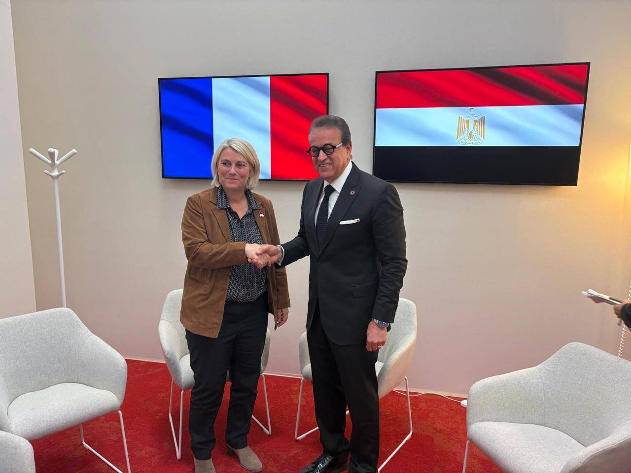 في إطار تعزيز العلاقات الدولية الصحية التقى الدكتور خالد عبدالغفار وزير الصحة والسكان مع الدكتورة ستيفاني ريست وزيرة الصحة والأسرة بفرنسا لبحث سبل تعزيز التعاون الثنائي وتبادل الخبرات الفنية والإدارية بين الجانبين وذلك خلال فعاليات قمة «الصحة الواحدة» المنعقدة بمدينة ليون