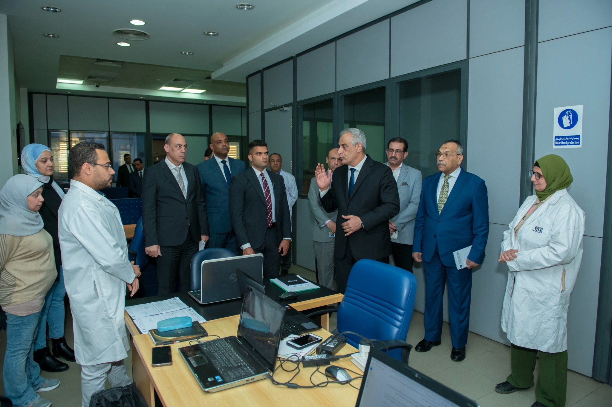استهل “جمبلاط” الجولة بزيارة وحدة التحضيرات الكيميائية، واطلع على الإمكانيات المتاحة بها، و تابع عمل وحدة الإنتاج النصف صناعي (Pilot Plant)، موجهًا بضرورة رفع كفاءتها وتعظيم الاستفادة منها، لافتًا إلى أهمية أن يكون للمهندس الكيميائي دور فعال وقيمة مضافة داخل منظومة العمل، من خلال طرح المقترحات التطويرية والمشاركة في حل المشكلات الفنية، مشددًا على ضرورة استثمار ما توصل إليه الباحثون بالمركز من مخرجات بحثية وتحويلها إلى منتجات ومعدات وتطبيقات صناعية قابلة للتنفيذ بما يساهم في دعم الصناعة الوطنية.