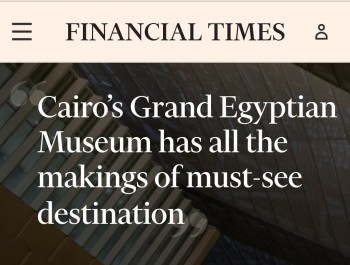 أفردت صحيفة "فاينانشيال تايمز"، ملفا كبيرا، للمتحف المصري الكبير، مدعوما بالصور والشروحات، مؤكدة أنه أكبر متحف في العالم يُخصص لحضارة واحدة، كما أنه يعكس مفهوماً راسخاً لعلم المتاحف في مصر: إذ صُمم وفق تقنيات عالية التطور ويركز على تلبية احتياجات الزائر ورغباته".
