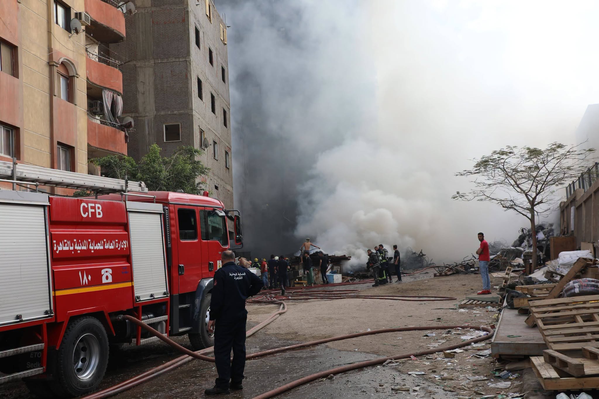 محافظ القاهرة يشرف على عمليات إطفاء حريق مخزن الخردة