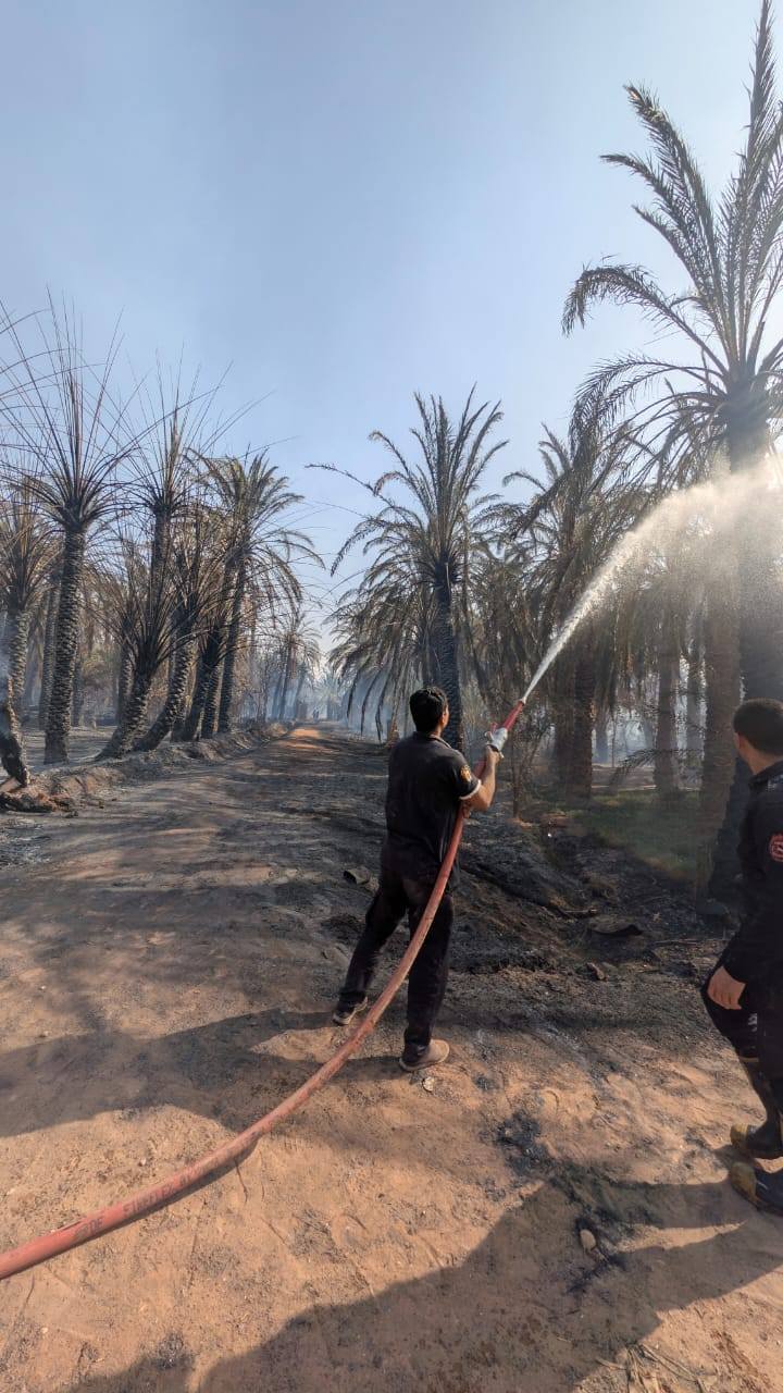وأوضحت المحافظ أن الحريق أسفر عن احتراق عدد من أشجار النخيل غير المثمر على مساحة حوالي ٦ فدان، دون وقوع خسائر في الأرواح أو نفوق للثروة الحيوانية بالحظائر الموجودة، حيث نجح رجال الحماية المدنية بالتعاون مع الأجهزة التنفيذية بالمركز في محاصرة النيران ومنع امتدادها إلى المناطق السكنية المجاورة، موجهةً الشكر لقوات الحماية المدنية وكافة الأجهزة المشاركة على جهودهم في سرعة التعامل والسيطرة على الموقف.