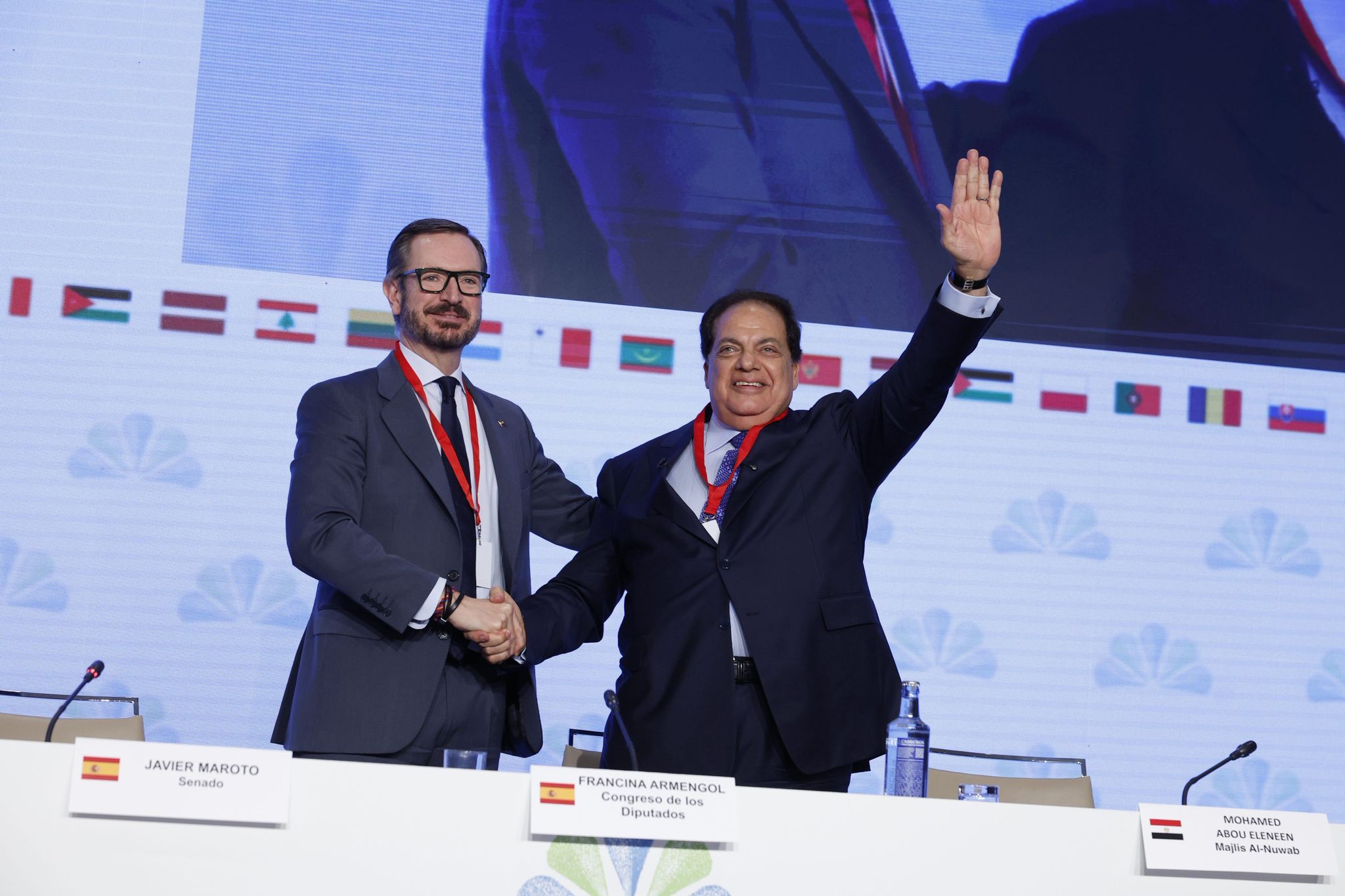 وجه محمد أبو العينين، وكيل مجلس النواب، الشكر للبرلمان الإسباني على جهوده الدؤوبة خلال الرئاسة الإسبانية للجمعية البرلمانية للاتحاد من أجل المتوسط، مؤكداً أن مصر سعت بقوة منذ اشتراكها في تأسيس الاتحاد من أجل المتوسط لترسيخ مفهومي الملكية المشتركة والمسؤولية التضامنية لتحقيق النمو والرخاء لشعوب المنطقة، من خلال تواجدها بفاعلية وحضور قوي ومؤثر في كافة محافل الاتحاد من أجل المتوسط وأنشطته. وأضاف أن الشعبة البرلمانية المصرية حرصت على المشاركة الفاعلة في أنشطة الجمعية البرلمانية للاتحاد من أجل المتوسط منذ تأسيسها، باعتبارها قناة مهمة للتواصل والحوار وتبادل الرؤى بين البرلمانيين ممثلي شعوب الاتحاد من أجل المتوسط.