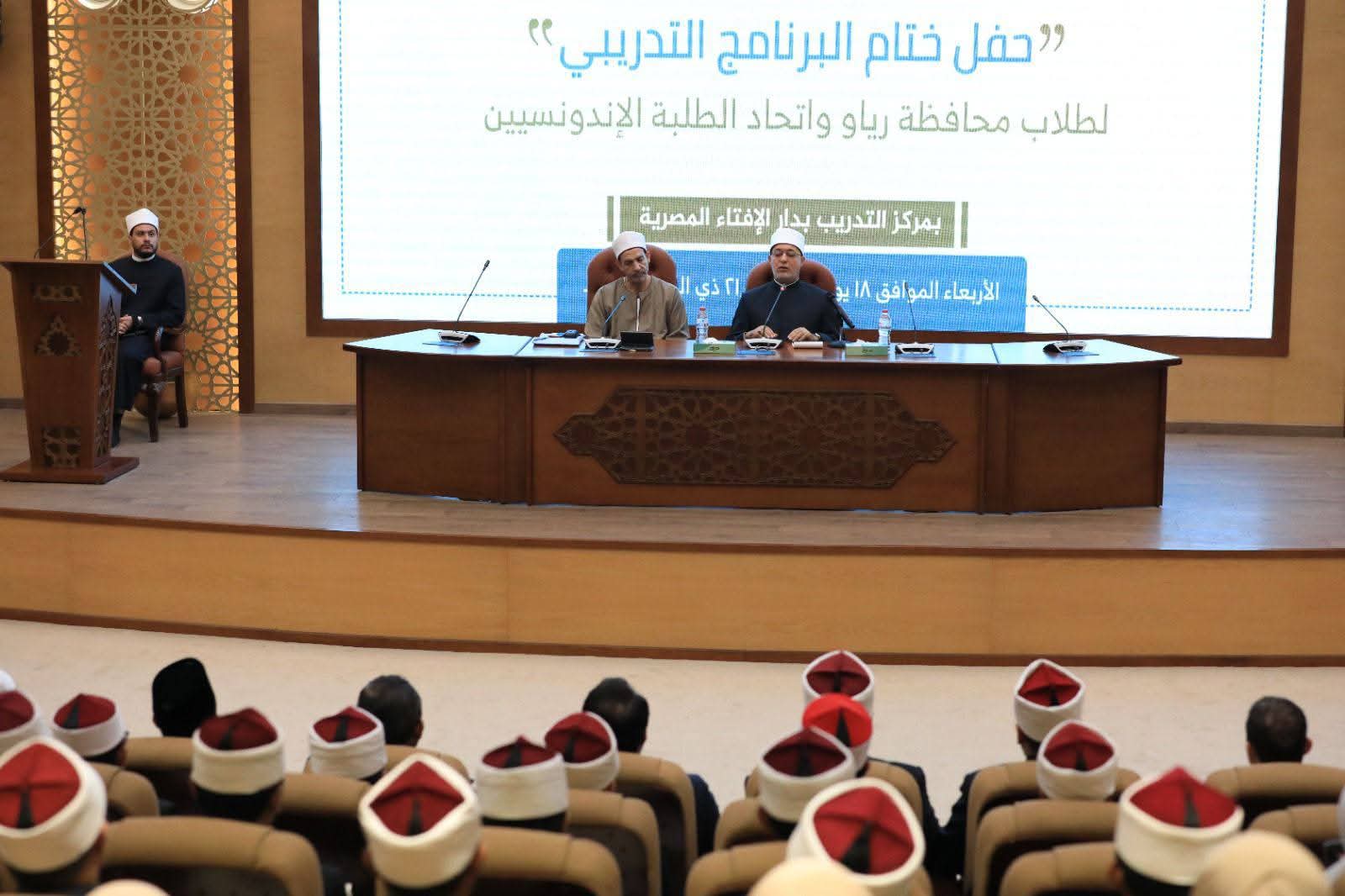 أكد فضيلة الدكتور نظير محمد عياد، مفتي الجمهورية، رئيس الأمانة العامة لدور وهيئات الإفتاء في العالم، أن فن الإفتاء ليس مجرد علم نظري يُلقَّن، بل هي مسؤولية عظيمة تتطلب إعدادًا نفسيًّا راسخًا، وذكاءً فطريًّا نافذًا، وتأهيلًا علميًّا وشرعيًّا عميقًا، مشددًا على أن الإفتاء الرشيد يمثل صمام أمان للمجتمعات، وحِصنًا لحماية مقاصد الشريعة وصيانة الاستقرار المجتمعي. جاء ذلك خلال كلمة فضيلته في حفل ختام البرنامج التدريبي الذي نظمته دار الإفتاء المصرية لطلاب محافظة رياو الإندونيسية، اليوم الاربعاء بالتعاون مع سفارة جمهورية إندونيسيا بالقاهرة. وأوضح فضيلة مفتي الجمهورية أن ما تلقاه الطلاب خلال فترة التدريب لا يمثل نهاية المطاف، بل هي بداية لمسيرة علمية متواصلة، تستدعي دوام البحث والتأمل والتدريب، مشيرًا إلى حرص دار الإفتاء المصرية على دعم طلبة العلم وتأهيلهم ليكونوا سفراء للسلام، وحملةً للخطاب الديني الوسطي المعتدل في مجتمعاتهم. ودعا الطلاب إلى التواصل المستمر مع دار الإفتاء، خاصة من خلال ورش العمل والدورات التي تنظمها وحدة الحوار، والتي تُعنى بقضايا الفكر الإلحادي والتحديات المعاصرة، مؤكدًا أن الدار لا تدخر جهدًا في فتح أبوابها أمام طلاب العلم، ومدّ جسور التعاون مع المؤسسات العلمية والدينية في مختلف دول العالم. من جانبهم، أعرب الطلاب المشاركون عن بالغ الشكر لفضيلة المفتي ودار الإفتاء المصرية، لما لمسوه من رعاية علمية وبيئة تدريبية متميزة، مشيرين إلى أن البرنامج أتاح لهم فرصة ثمينة للنهل من معين علمي وسطي يعكس رسالة الإسلام الحقيقية، مؤكدين فخرهم بالتعلم في رحاب الأزهر الشريف ودار الإفتاء المصرية، وأن البرنامج شكّل نقطة تحوُّل في إدراكهم العميق لقضايا الفتوى، وأهمية الالتزام بالعلم والانضباط والمنهجية الوسطية. كما بيَّنوا أن عدد الطلاب الإندونيسيين الدارسين في مصر يبلغ نحو 15 ألف طالب وطالبة، وأن مثل هذه المبادرات تسهم في تطوير قدراتهم العلمية والدعوية، وتمكنهم من نقل صورة صحيحة عن الإسلام في بلدانهم. وفي ختام الحفل، تم توزيع الشهادات على الطلاب المشاركين، والتقاط الصور التذكارية مع فضيلة المفتي، وسط أجواء من الامتنان