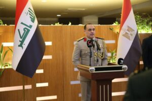 وأعرب ملحق الدفاع المصري في العرأق عن أمله أن يعم السلام والأمن في ظل ظروف دقيقة يعيشها العالم وأن أدعوكم أن نتوحد جميعا من أجل إستقرار ورخاء الشعوب، ووجه تحية خالصة لرجال القوات المسلحة المصرية الباسلة وقائدها الأعلي السيد الرئيس عبد الفتاح السيسي، ووجه الشكر للحاضرين على مشاركتهم بحفل القوات المسلحة المصرية. كما توجه بعظيم الشكر والتقدير لجمهورية العراق حكومة وشعبا، على ضيافتهم الكريمة، والدور الفعال المستمر لتعزيز العلاقات والروابط القوية بين البلدين الشقيقين.