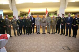 وقال الملحق العسكري المصري اكرم سعيد ان مصر تشهد خلال السنوات الاخيرة ثورة هائلة في كافة قطاعات التنمية بالدولة في ظل تعاون وثيق واحترام متبادل لحقوق دول الجوار في الحياة الامنة ، ان مظاهر الازدهار في مصر تشمل ايضا المشروعات الاقتصادية العملاقة والتي تعيد مصر الى وضعها الرائد بالمنطقة بالتعاون مع اشقائها واصدقائها من الدول العربية والاجنبية .مشيرا الى ان ما تحقق من اهداف لدعم المصالح المشتركة بين بلدنا خلال فترة وجيزة من العمل المكثف ي كافة مجالات التعاون العسكري استند على اسس ومبادئ راسخة مبنية على رغبتنا المشتركة في نشر ثقافة السلام والتصدي لقوى العنف والتطرف التي تشهدها منطقتنا خلال الفترة الاخيرة .