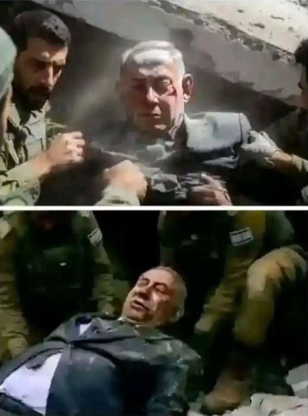 وتداول مستخدمو منصات التواصل صورًا ومقاطع مصورة قالوا إنها تُظهر إصابة بنيامين نتنياهو نتيجة قصف صاروخي إيراني طال مناطق في تل أبيب الكبرى وحيفا والجليل والقدس، حيث يقع أحد منازل نتنياهو في شارع غزة بمدينة القدس.