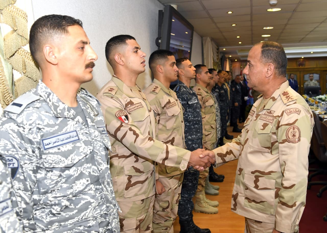 ونقل القائد العام للقوات المسلحة وزير الدفاع والإنتاج الحربي تحيات وتقدير السيد الرئيس عبد الفتاح السيسى رئيس الجمهورية القائد الأعلى للقوات المسلحة للمقاتلين، كما استعرض عددا من الموضوعات الجارية على الصعيدين الدولي والإقليمى المرتبطة بالأمن القومي المصري.