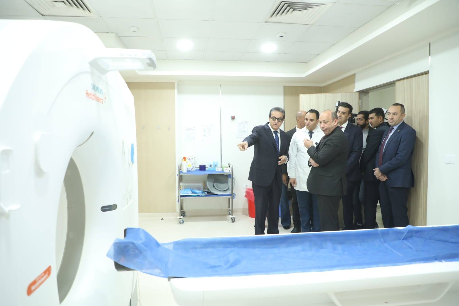 وخلال الجولة التفقدية، تفقد الوزير قسم الطوارئ والإنعاش والتقى بالمرضى للاطمئنان على سير العمل، كما اطلع على قسم الأشعة وغرفة كنترول القسطرة وصالة الجيم، موجهاً بربط خدمات علاج السكتة الدماغية بخط ساخن أو تطبيق إلكتروني لتسريع الاستجابة، مع التأكيد على ضرورة الصيانة الدورية للأجهزة الطبية.